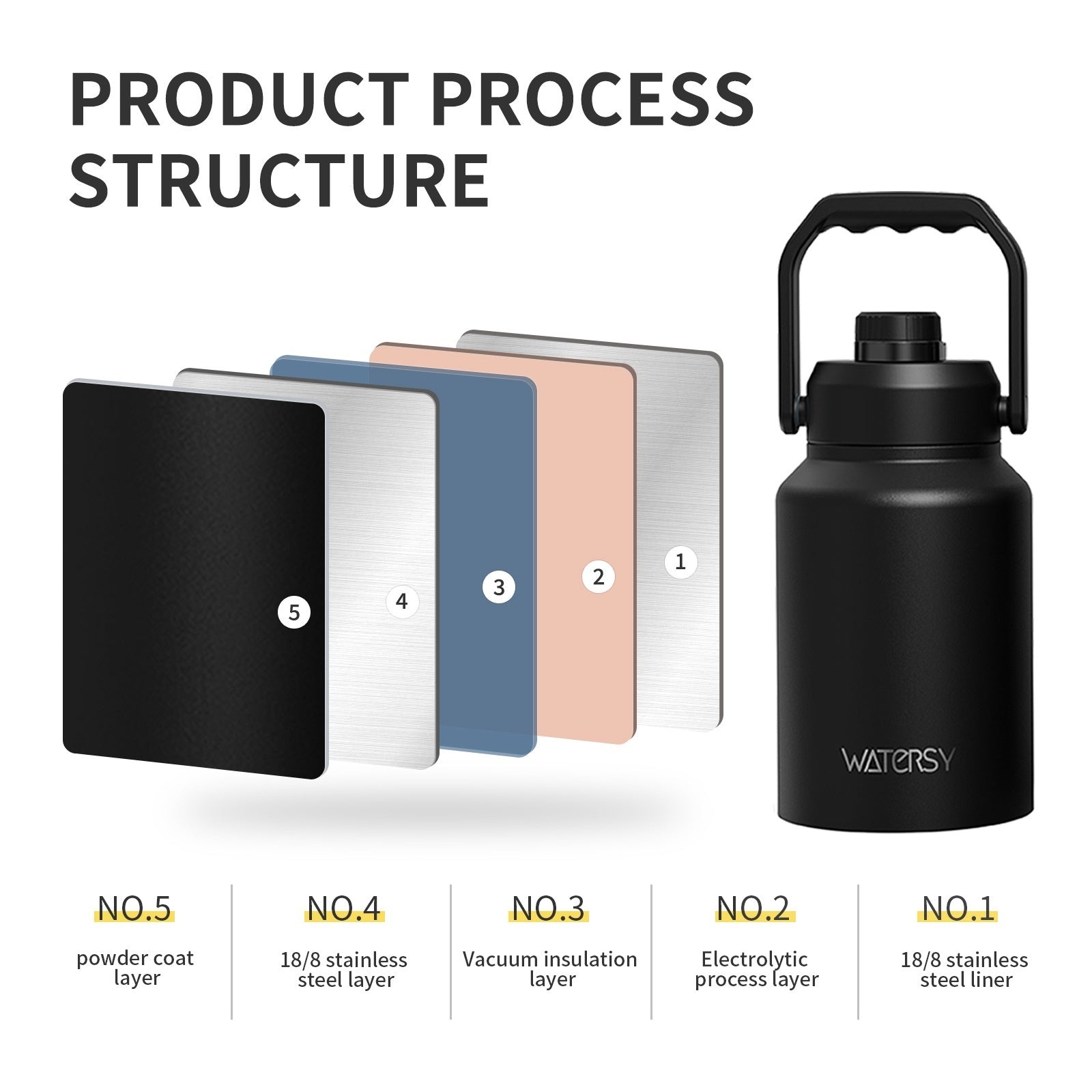 Fabricada con acero inoxidable 304 de alta calidad, esta botella es resistente, duradera y libre de BPA. Su gran capacidad te permite mantenerte hidratado todo el día sin necesidad de rellenarla constantemente. Con su asa ergonómica, llevarla es súper cómodo.